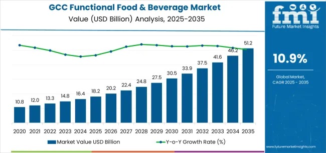 NEWARK, DE, UNITED STATES, November 13, 2025 /EINPresswire.com/ -- The GCC functional food and beverage market is entering a decade of strong expansion, reshaping consumer health patterns and nutritional innovation. The market is forecast to grow from USD 18.2 billion in 2025 to USD 51.7 billion by 2035, reflecting a robust CAGR of 10.9%, according to Future Market Insights (FMI).